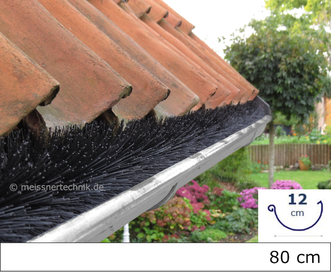 Die Bürste verhindert das Verstopfen der Dachrinne durch Laub. Feuchtes Laub wird zunächst vom Wind getrocknet und dann weggeweht. Außerdem gibt es keine Möglichkeit für Marder, Eichhörnchen oder Vögel, unter die Dachpfannen einzudringen.