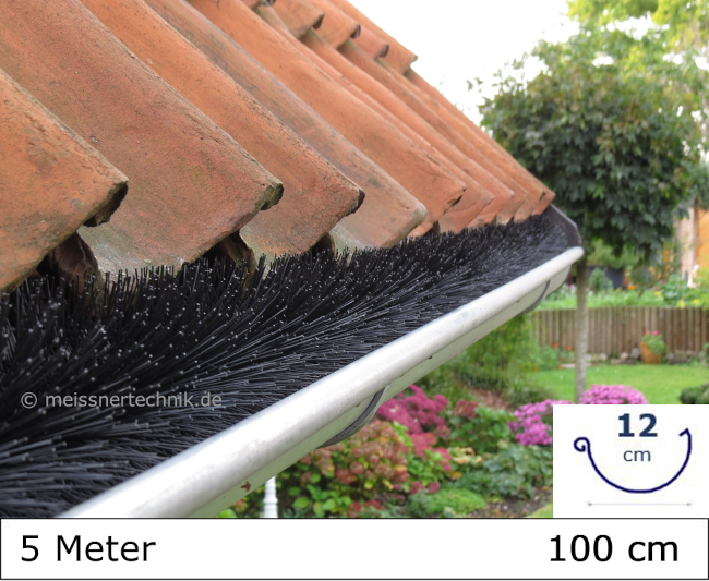 Die Bürste verhindert das Verstopfen der Dachrinne durch Laub. Feuchtes Laub wird zunächst vom Wind getrocknet und dann weggeweht. Außerdem gibt es keine Möglichkeit für Marder, Eichhörnchen oder Vögel, unter die Dachpfannen einzudringen.